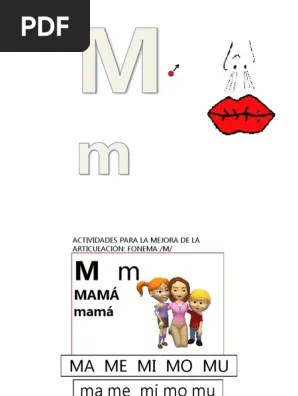 La consonante /m/ es un fonema nasal, bilabial, sonoro... Posee un modo de articulación oclusivo, es decir, se produce un cierre total momentáneo del paso del aire. Discriminación auditiva del fonema r y rr. O (ver fichas de pares de palabras). Láminas y lotos del fonema m en posición inicial, media e inversa. De acuerdo a lo que indica la fonología en español no existe este tipo de fonema. De acuerdo a lo que indica la fonología en español no existe este tipo de fonema.